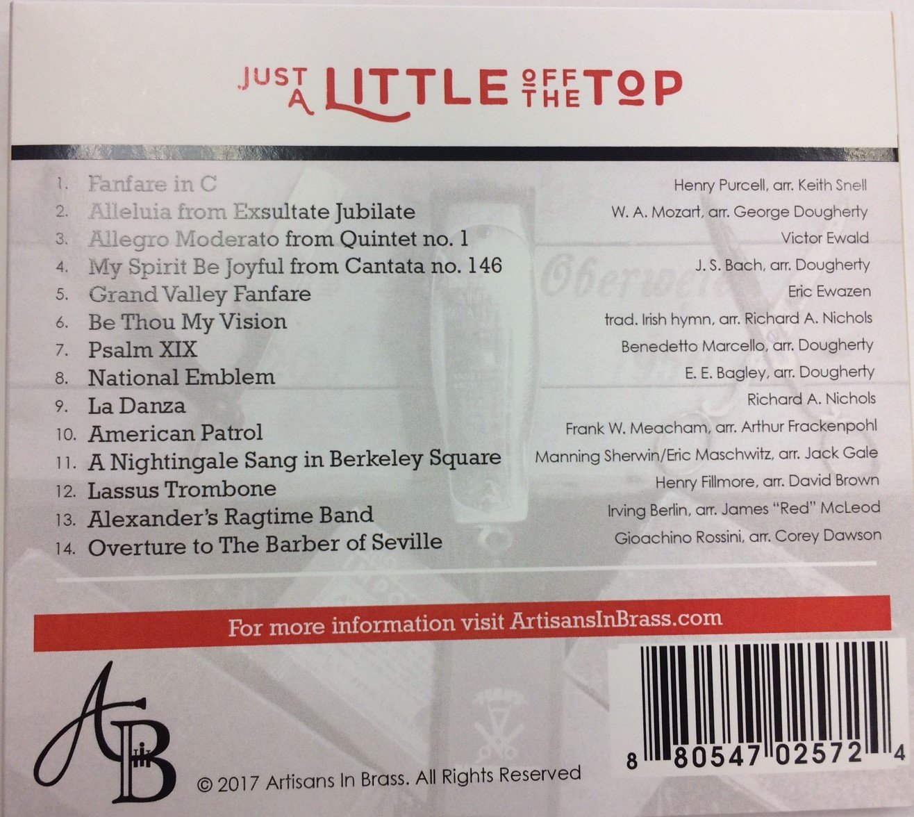 Creativity, skill, education, attention to detail, distinction, refinement, integrity - all characterize the artisan. Often associated with physical hand craftsmanship, the Artisans in Brass Quintet instead combines a diverse blend of talents in order to formulate, craft, then refine these into a distinctive, inspirational, multi-faceted musical experience. From unique and fresh arrangements of timeless classics, patriotic and sacred literature to modern original compositions, Artisans in Brass entertains and engages audiences, always striving to hone their craft and advance the art of the brass quintet.